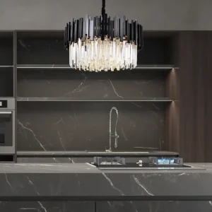 Candelabru City, Textura Cristal, Metal, 3 X E27, Negru