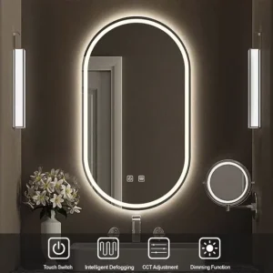 Oglinda LED cu Senzor Premium, de 60×80 cm, include funcție de dezaburire și lupă cosmetică + 3 tipuri de lumină (caldă, rece, neutra). Oferă iluminare de calitate superioară și control ...