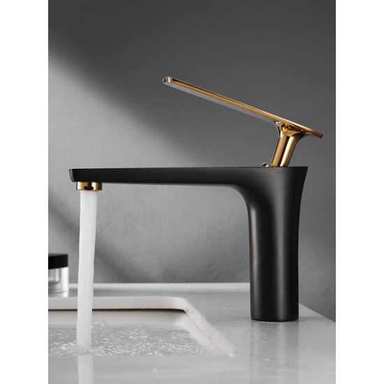 Fabricată din alamă, acesta este un material durabil și rezistent la coroziune, oferind o durabilitate sporită. Finisajul negru-gold al bateriei adaugă o notă de lux și eleganță oricărei băi, fiind potrivit atât pentru decorurile moderne, cât și cele clasice.