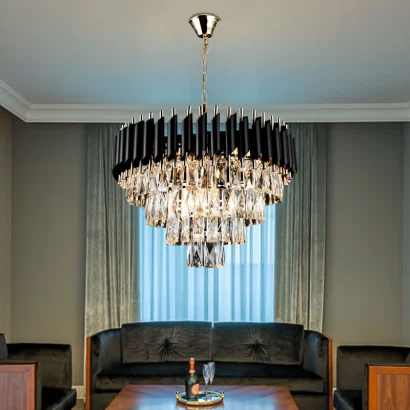 Acest candelabru va deveni atractia principala a oricarui spatiu, multumita designului de exceptie, cu finisaj deosebit al metalului si cu cristale ornamentale din sticla K9 ce se regasesc intr-un numar impresionant.