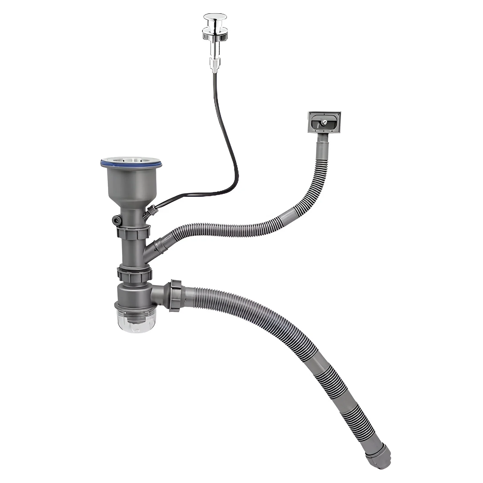 Sifon: Componentă importantă pentru evacuarea corectă a apei, sifonul este inclus în set pentru a asigura funcționarea adecvată a sistemului de drenaj.