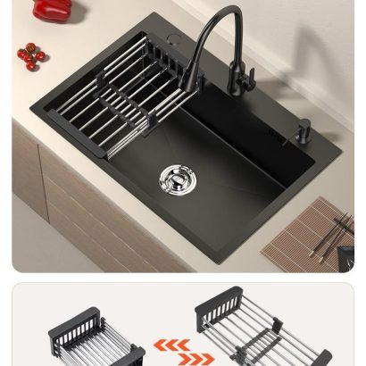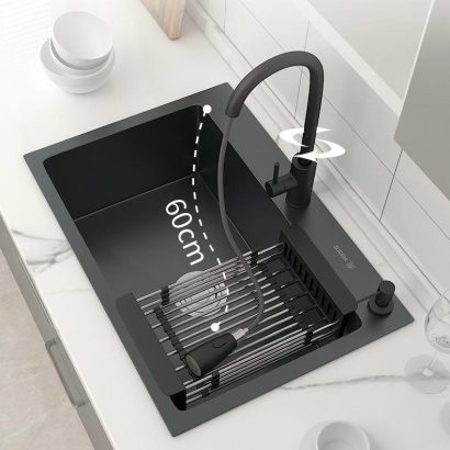 Chiuveta este fabricata din otel inoxidabil de inalta calitate pentru durabilitate, performanta si frumusete stralucitoare. Are o suprafata igienica, rezistenta la zgarieturi si elastica, care necesita un minimum de ingrijire si intretinere. Chiuveta este instalata deasupra si sub blat, creand un aspect fara cusur intre chiuveta si blat. Chiuveta este fabricata din otel inoxidabil rezistent la rugina, cu o grosime a materialului de 3 mm, cuva de 1 mm cu acoperire. Cele mai mari avantaje ale constructiei robuste a produsului sunt rezistenta mai mare la impact, stabilitatea mai mare a robinetului mixer si zgomotul semnificativ mai mic al jetului de apa din piscina. Rezistent la impacturi, caldura, zgarieturi, substante chimice si pete de toate tipurile