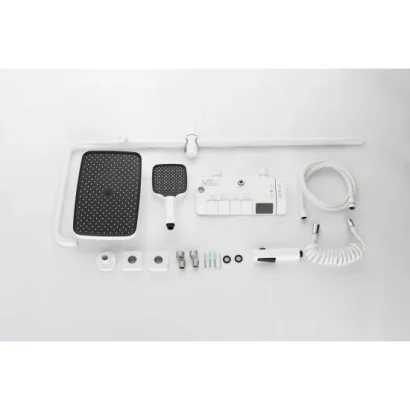 Coloana de dus alb SMK03W, cu baterie amestecatoare si montaj pe perete este supla, eleganta si confera acea imagine speciala pe care ti-o doresti de la o cabina de dus moderna.