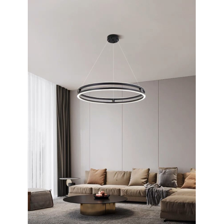 LUSTRA LED MINIMALIST RING DIAMETRU 60CM CU TELECOMANDA NEGRU LUMINA/RECE/CALDA/NEUTRA INTENSITATE REGLABILA – ILUMINAT CU LED PENTRU INTERIOR!