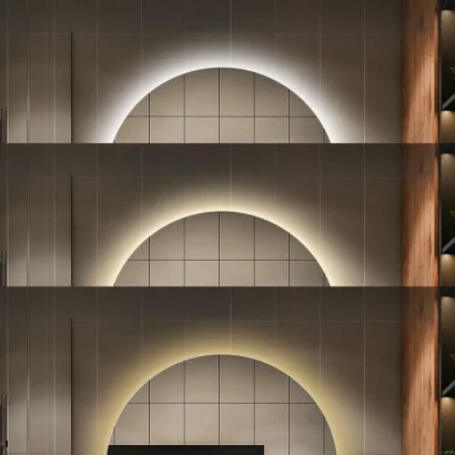 Lumină LED integrată: Oglinda dispune de iluminare LED pe marginea sa, care oferă trei opțiuni de culoare a luminii – rece, caldă și neutră. Aceasta vă permite să ajustați lumina în funcție de preferințele dvs. personale și de nevoile de iluminare din momentul respectiv.