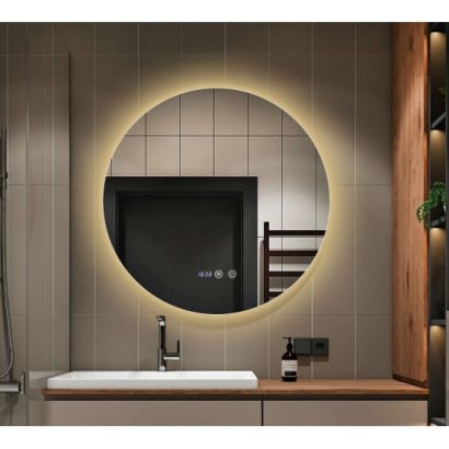 - Lumină ambientală în spate: O caracteristică distinctivă a acestei oglinzi este lumina ambientală integrată în partea din spate a acesteia. Această lumină subtilă poate crea o atmosferă relaxantă în baie și poate funcționa și ca sursă de iluminare suplimentară în baie, fără a fi necesară aprinderea altor luminări.