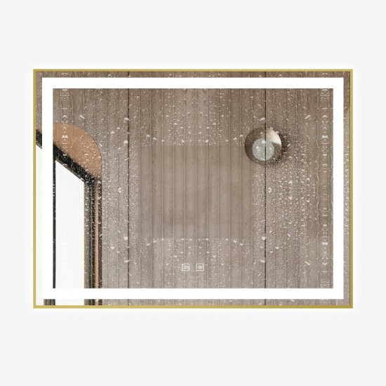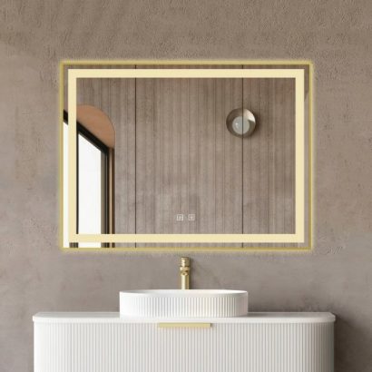 Oglindă Baie LED și Dezaburire Premium cu Senzor Touch, Lumina Rece, Caldă și Neutră, 80x60cm, cu rama Auriu