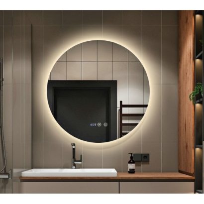- Lumină ambientală în spate: O caracteristică distinctivă a acestei oglinzi este lumina ambientală integrată în partea din spate a acesteia. Această lumină subtilă poate crea o atmosferă relaxantă în baie și poate funcționa și ca sursă de iluminare suplimentară în baie, fără a fi necesară aprinderea altor luminări.