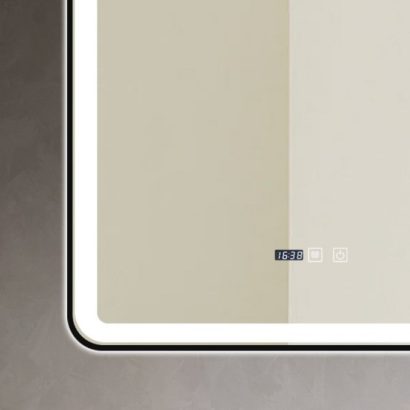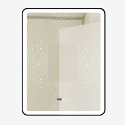 Oglindă Baie LED și Dezaburire Premium cu Senzor Touch, Lumina Rece, Caldă și Neutră, 70x90cm, cu rama Negru Mat, Ceas
