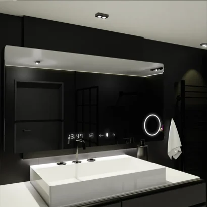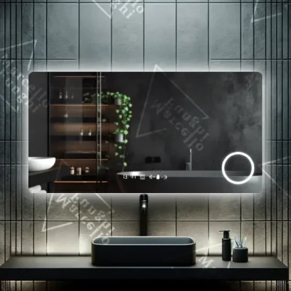 Ceasul digital integrat și lupa cosmetică încorporată adaugă un plus de funcționalitate, transformând oglinda într-un instrument indispensabil pentru rutina zilnică. Lupa este ideală pentru activități care necesită precizie, cum ar fi machiajul sau bărbieritul.