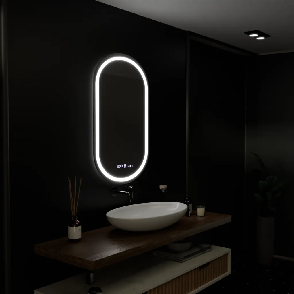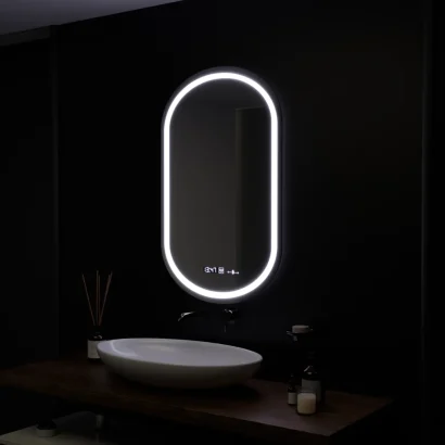 Cu o simplă atingere, utilizatorii pot activa un sistem încorporat care încălzește suprafața oglinzii, prevenind formarea aburului. Acest proces nu numai că asigură claritatea constantă a oglinzii, dar și menține un aspect elegant și curat al acesteia, fără a afecta funcționalitatea sau estetica sa modernă.