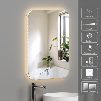 Datorita functiei TOUCH, oglinda se deosebeste simtitor fata de cele clasice. Folosind o atingere delicata asupra butonului aflat pe suprafata oglinzii, poti pune in functiune sau poti opri LED-urile de pe marginile sale. Totodata, tinand apasat butonul touch, ai posibilitatea si de a regla intensitatea luminii pe care LED-urile o emana. Folosind functia de dezaburire poti uita de condensul care se formeaza pe oglinzile clasice, si sa te bucuri de o reflexie clara tot timpul in oglinda din baia ta.