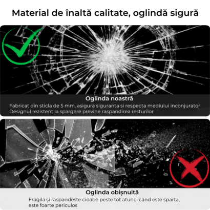 Oglinzile sunt ambalate in cutie din carton dur, cu coltare din carton de 0.5mm pe laterale si cu carton gofrat in interior pentru o a garanta faptul ca nu se deterioreaza pe transport.