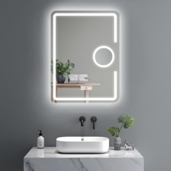 Oglinda Led Si Touch Cu Functie Dezburire,80X60 Cm, Esn J15, Lupa Cosmetica