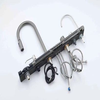 Baterie: Inclusă în pachet, bateria este proiectată pentru a oferi o funcționalitate ușoară și convenabilă. Cu design modern și finisaj în același ton de gri închis ca și chiuveta, se integrează armonios în ansamblu.