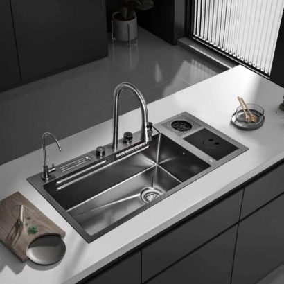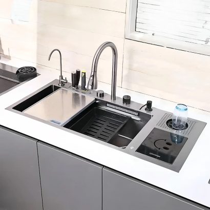 Această chiuvetă se potrivește perfect într-o bucătărie modernă, oferind funcționalitate sporită și un aspect sofisticat.